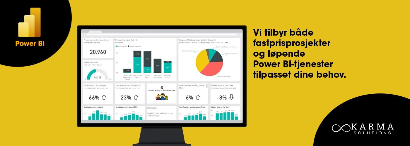 Power BI gir deg oversikten - i sanntid, på tvers av avdelinger. Hos Karma Solutions hjelper vi deg med å strukturere dataene dine, bygge meningsfulle modeller og visualisere innsikten på en måte som gjør det enklere å styre og ta gode beslutninger.